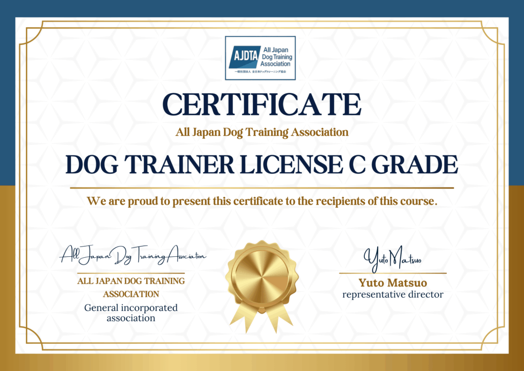一社)全日本ドッグトレーニング協会公認 公式ディプロマ発行